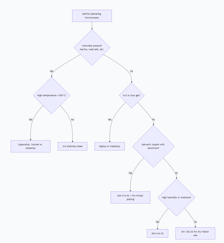 301 Stainless Steel: Offers high strength after cold working and is cost-effective for high-volume production, but has lower corrosion resistance than 304 or 316 and is not suitable for marine or chloride-rich environments.